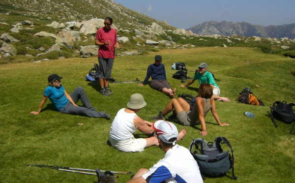 Quelques photos du circuit 'Escapade sur le GR 20' qui propose la visite des Pozzi de Bastelica. On profite de cette escale pour se reposer sur les pelouses et écouter les explications de Géraldine...