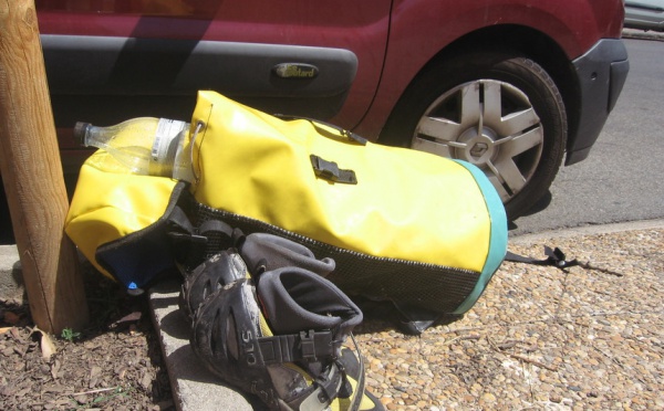 La fatigue de la saison commence à se faire sentir....Manu part au canyon ce matin. En changeant de véhicule, il laisse ses affaires de ....canyon par terre près de la voiture..