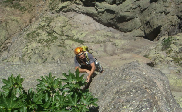 Dans la voie de l'arche à Capu di Marcia Nouvelle aventure avec Bruno, cette fois dans la voie de l'arche à Capu di Marcia. La voie est logique et aérienne avec dans le dos toute la chaîne du Cintu....
