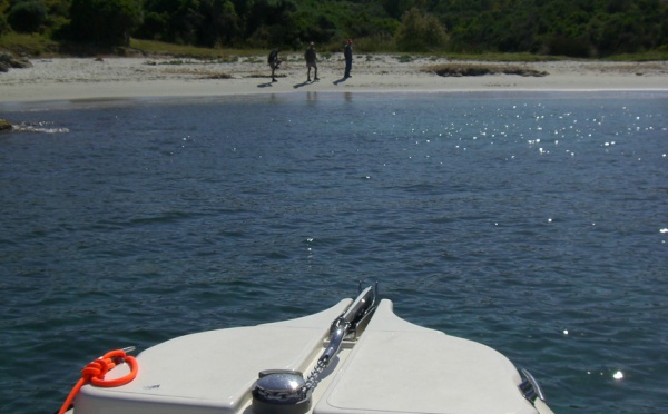 Nous avons transporté les bagages et les ravitaillements du groupe de l'Ile-Rousse jusqu'à la plage de Ghiniu en bateau pour y...